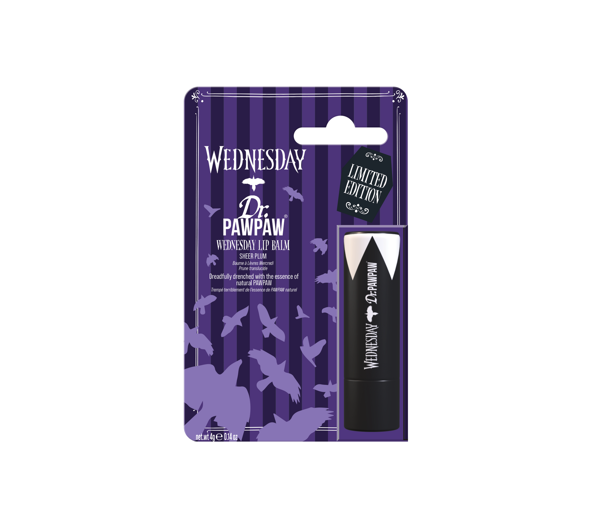 Dr.PAWPAW’s natural lip balm has been merged with a Wednesday-inspired Sheer Plum Tint. Infused with PAWPAW (papaya fruit) known to nourish, Aloe Vera to soothe, Castor Oil and Olive Oil to moisturise for all gorgeous lips that crave hydration and a mysterious hint of darkness.